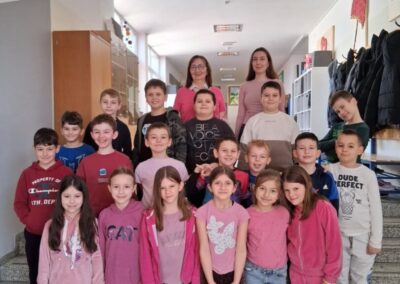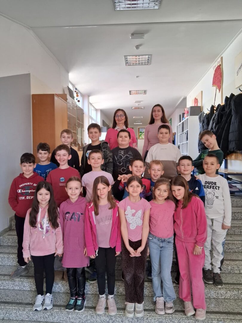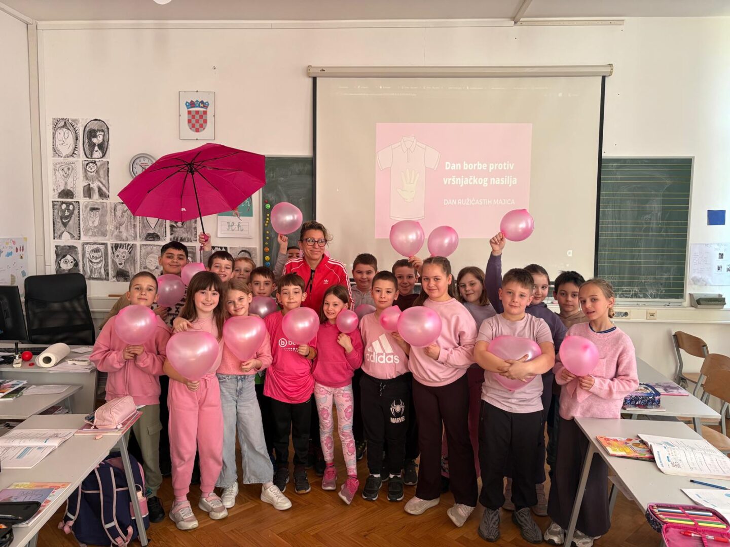U srijedu, 25. veljače, u našoj je školi obilježen Dan ružičastih majica – nacionalni dan borbe protiv vršnjačkog nasilja. Učenici i učitelji pridružili su se ovoj važnoj inicijativi nošenjem ružičastih majica i sudjelovanjem u raznim aktivnostima kojima su poslali jasnu poruku da nasilju nema mjesta u našoj školi. Tijekom dana učenici su kroz radionice, razgovore i kreativne zadatke promišljali o važnosti međusobnog poštovanja, tolerancije i empatije. Izrađivali su plakate s porukama podrške, pisali poticajne poruke prijateljstva te razgovarali o načinima kako prepoznati i spriječiti vršnjačko nasilje.