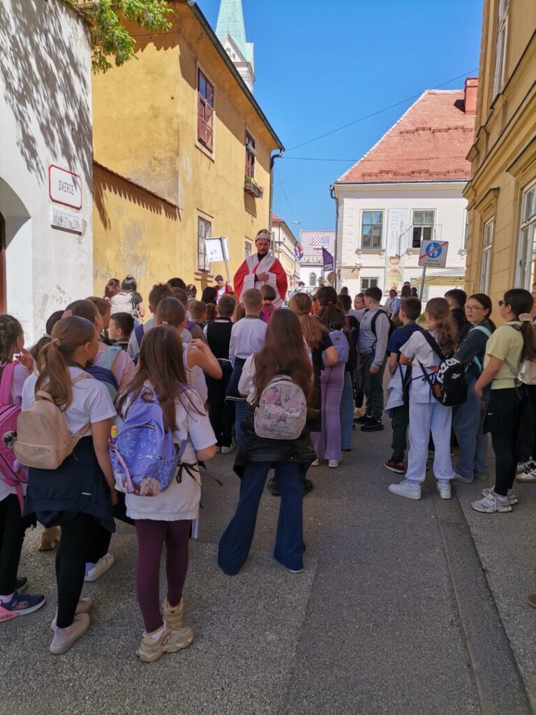 Učenici četvrtih razreda naše škole, u pratnji učiteljica i pedagoginje, posjetili su 24. travnja 2026. zagrebački Gornji Grad i sudjelovali u izvanučioničkoj nastavi „Gornjogradske priče“. Učenici su se tijekom edukativno-kostimiranog obilaska gornjogradskih znamenitosti susreli s likovima kralja Bele IV., Manduše, Matije Gupca, patera Petra Vragovića, Petrice Kerempuha i Magde Paprenjarke te se upoznali s bogatom kulturnom i povijesnom baštinom Grada Zagreba. Učenicima je na kraju obilaska uručena Povelja o slobodi. Bilo je zanimljivo i poučno.