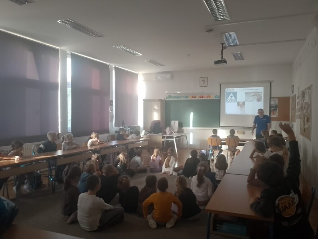 U srijedu, 8. listopada 2025. našu je škole posjetio gospodin Tomislav Vuzem, zaposlenik HAK-a. Učenicima prvih razreda održao je predavanje o pravilnom i sigurnom ponašanju u prometu. Učenici su naučili koje opasnosti vrebaju na putu od kuće do škole te kako se pravilno i sigurno kretati u prometu. Učenici su pažljivo pratili predavanje i znatiželjno postavljali pitanja. Nakon predavanja učenici su dobili vrećicu, bojanku i slikovnicu „Sigurno u prometu“.