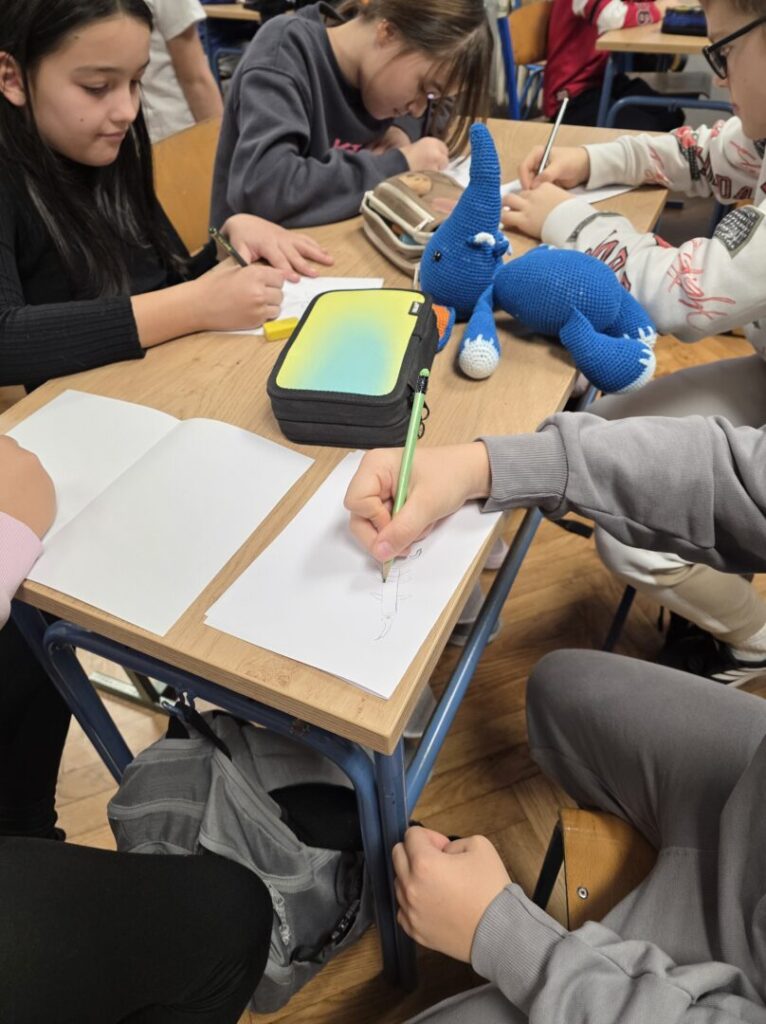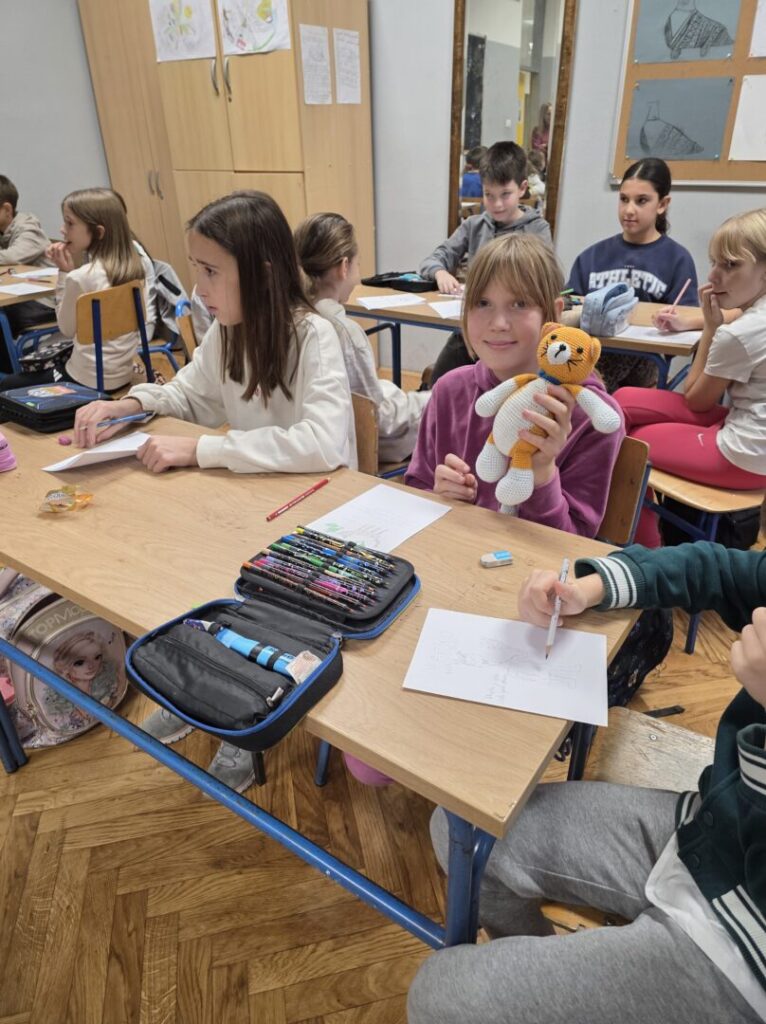 Maja Markić autorica je nekoliko zabavno-poučnih slikovnica za djecu i prvog dječjeg hrvatsko- engleskog romana za djecu. U naš je razred donijela svoje slikovnice, kukičane likove i različite poklone. Nakon što su učenici pogledali književna djela i igračke, Maja je pročitala ulomak iz priče Šašava mačka. Navodeći učenike na maštanje, Maja je započela radionicu pisanja samostalne priče. Učenici su zamišljali svoj lik, dodavali mu osobine od kojih je jedna trebala biti negativna. Nakon zamišljanja učenici su na papir nacrtali taj lik. Slijedeći upute, nastale su neobične i maštovite priče jedinstvene za svakog učenika.